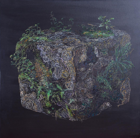 Unele lucruri nu cresc pentru a se înălța. Cresc ca să rămână. Această lucrare pare o împletire între rădăcină și amintire. Un trunchi frânt care nu se mai îndreaptă spre cer, ci devine humus pentru ceva mai profund: o acumulare de forme, de fibre, de gesturi nespuse. Nu știm exact ce vedem. Cuiburi? Flori ofilite? Torsuri încolăcite? Poate că nici nu contează. Pentru că totul aici pare să respire dintr-o singură rădăcină — una care s-a oprit din creștere pentru a susține viața altora. Aici, în această tăcere vegetală, învățăm că viața nu e doar mișcare. Ci și strângere. Repliere. Protejare. Un fel de a păstra ce a fost, fără să cerem să fie din nou.